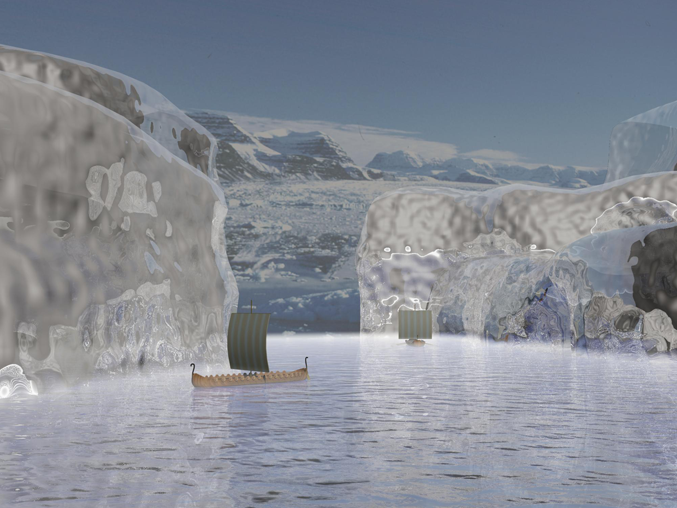 Wikingerschiff im Nebel Zimmer Vorzeichung Lowpoly model des Bärs Highpoly model des Bärs